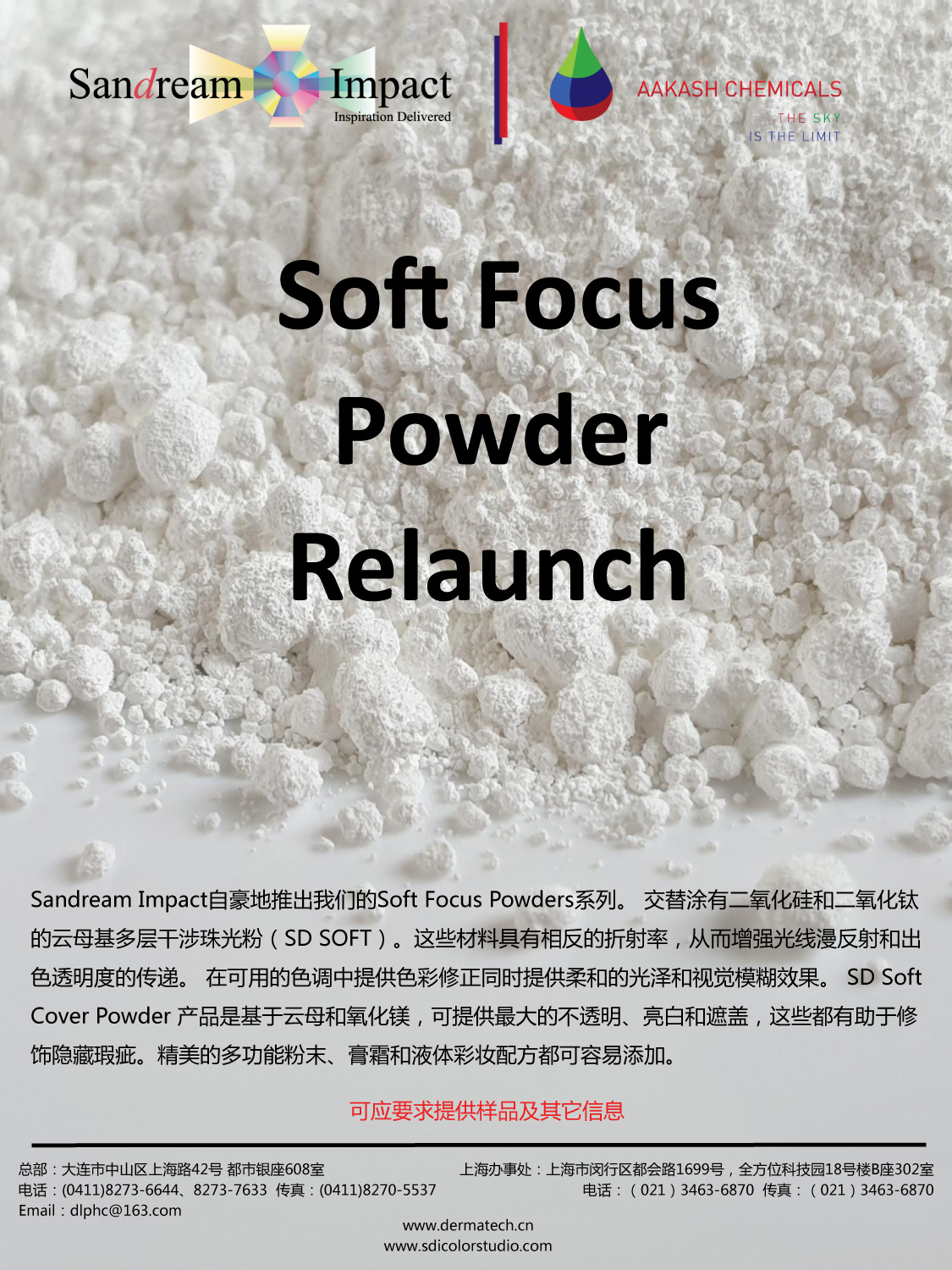 Sandream Impact自豪地推出我们的Soft Focus Powders系列。 交替涂有二氧化硅和二氧化钛的云母基多层干涉珠光粉(SD SOFT)。
